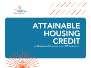 - Reducing NM's unique and significant tax burden on attainable housing units could reduce the average priced home by +/- 3.0%. (approx. $10,000 on an average-price NM Homes.)